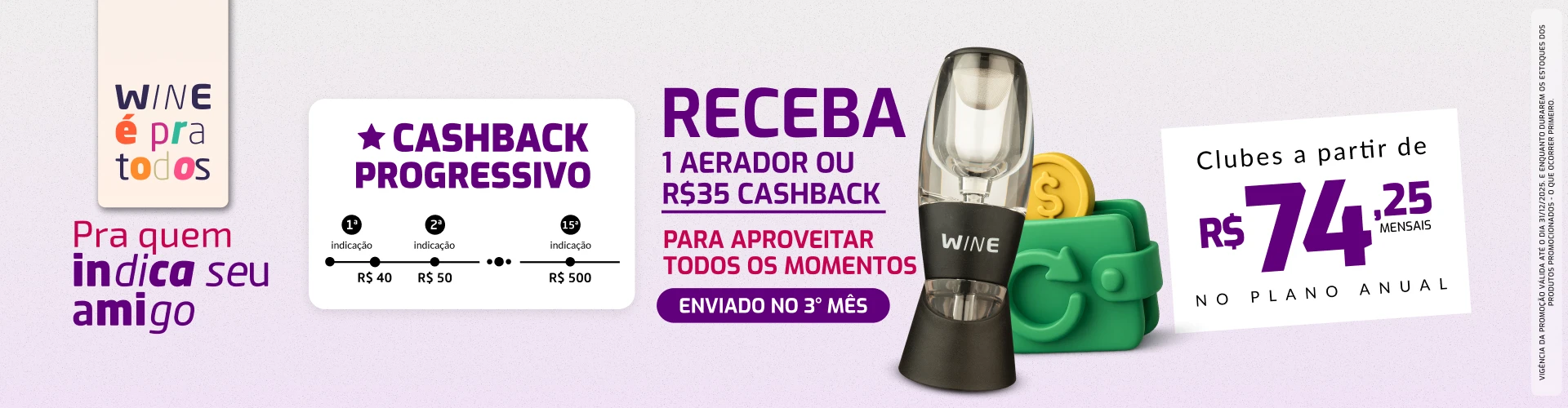Sim! Mas vale somente se ele assinar o Clube Wine. Caso seu amigo assine WINEYOU, você e ele não ganham brinde e cashback.