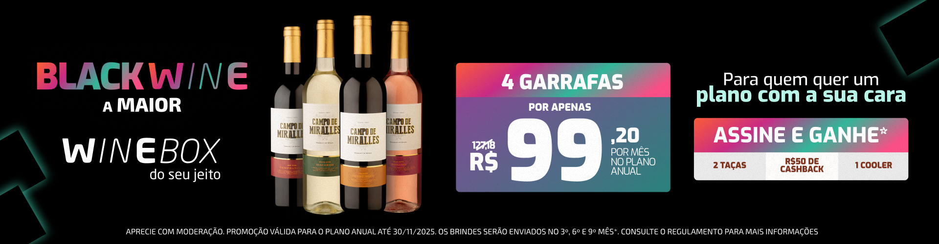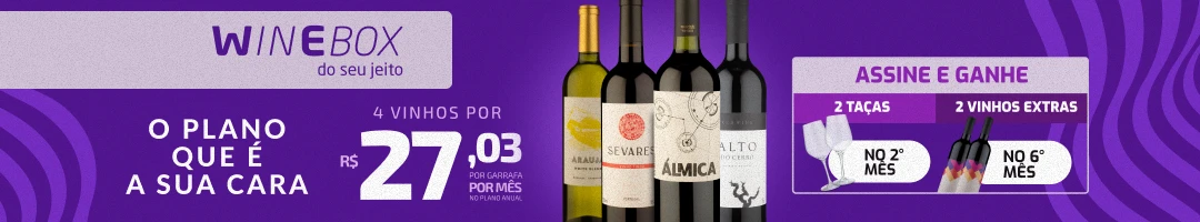 A WineBox do Seu Jeito é uma assinatura mensal do Clube Wine, o maior clube de vinhos no mundo com mais de 380 mil sócios. Os vinhos são escolhidos por nossa Sommelière, especialista no assunto, que considera os estilos que você escolheu para compor sua caixa. A Wine Box do Seu Jeito oferece 4 estilos diferentes: você escolhe 2 estilos e recebe 4 garrafas, 2 garrafas de cada estilo escolhido.