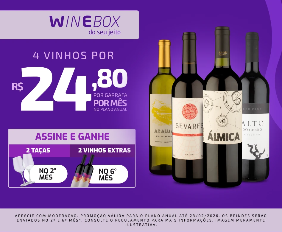 Recebe todo mês 4 vinhos + revista + corta gotas! Ganhe 15% OFF em qualquer produto no site!