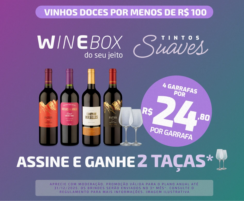 Você pediu, nós fizemos: chegou a assinatura de vinhos tintos suaves na Winebox do seu jeito! Rótulos perfeitos para quem aprecia uma bebida leve e agradável, eles são a escolha ideal para momentos de descontração e celebração.