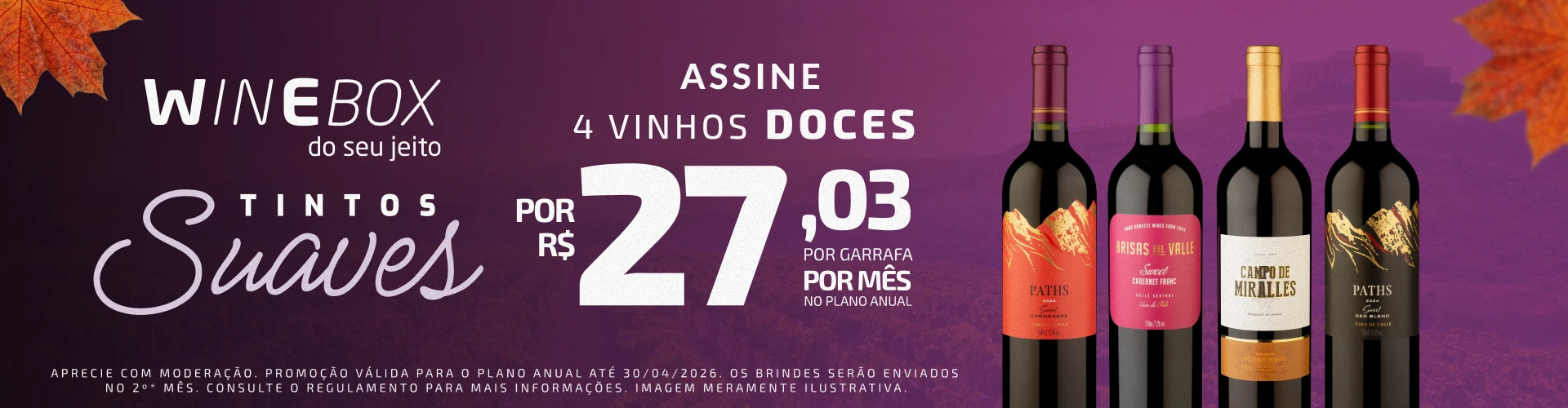Você pediu, nós fizemos: chegou a assinatura de vinhos tintos suaves na Winebox do seu jeito! Rótulos perfeitos para quem aprecia uma bebida leve e agradável, eles são a escolha ideal para momentos de descontração e celebração.