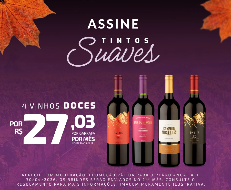 Você assina a nova seleção de vinhos suaves, que combina perfeitamente com você!